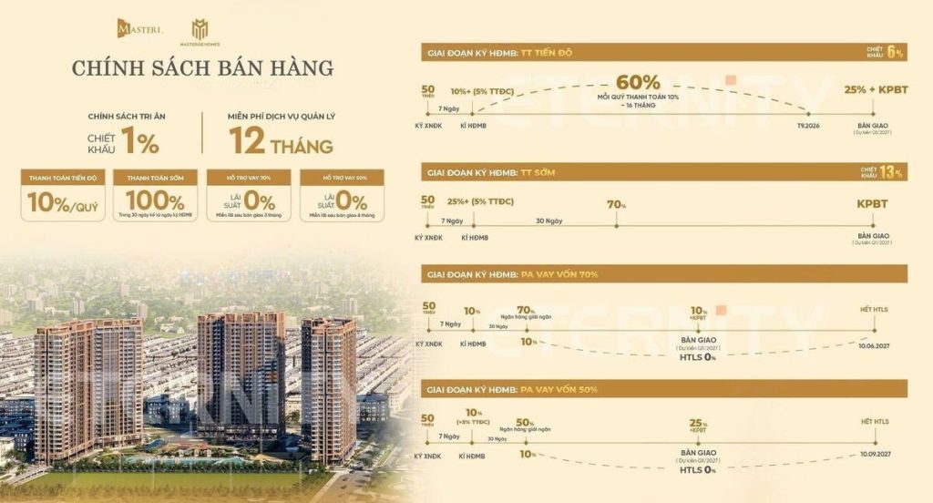 Masterise Homes thường có chính sách bán hàng linh hoạt và cạnh tranh, tạo điều kiện thuận lợi cho nhà đầu tư: